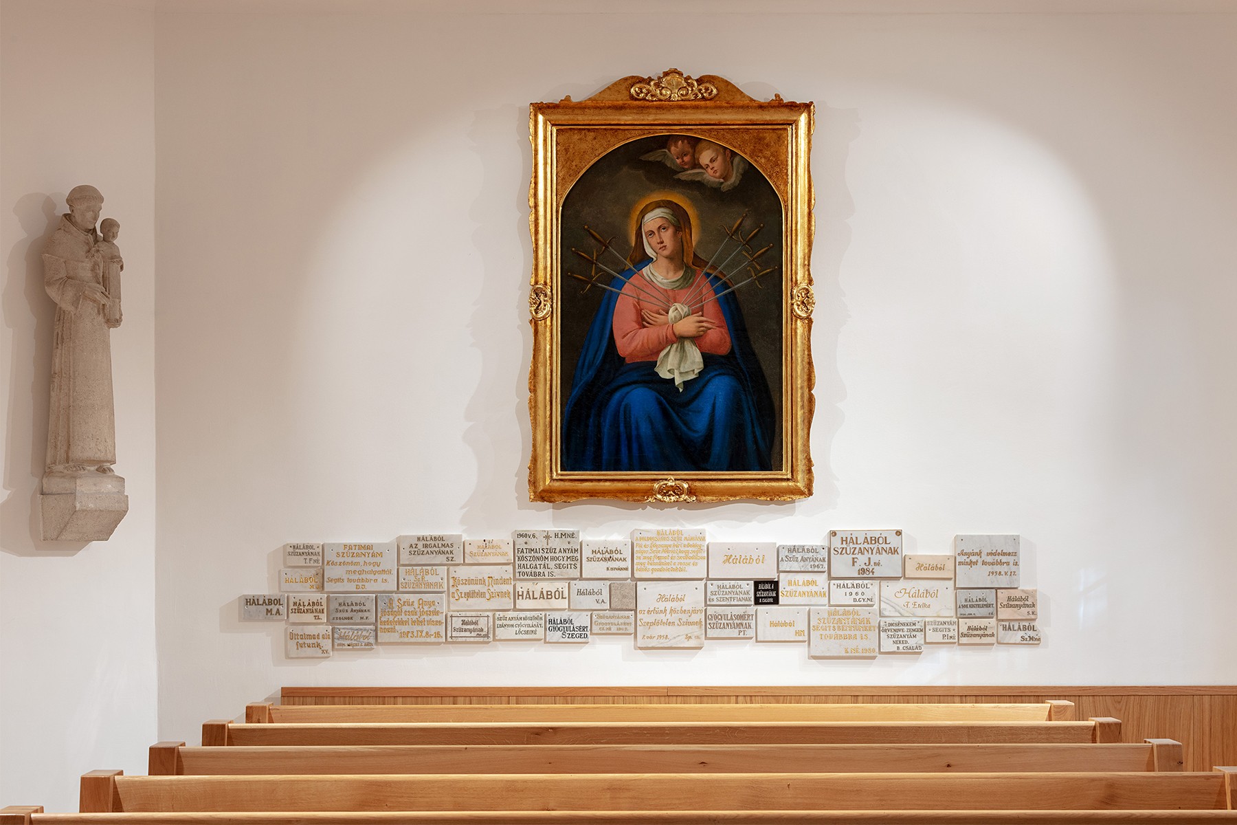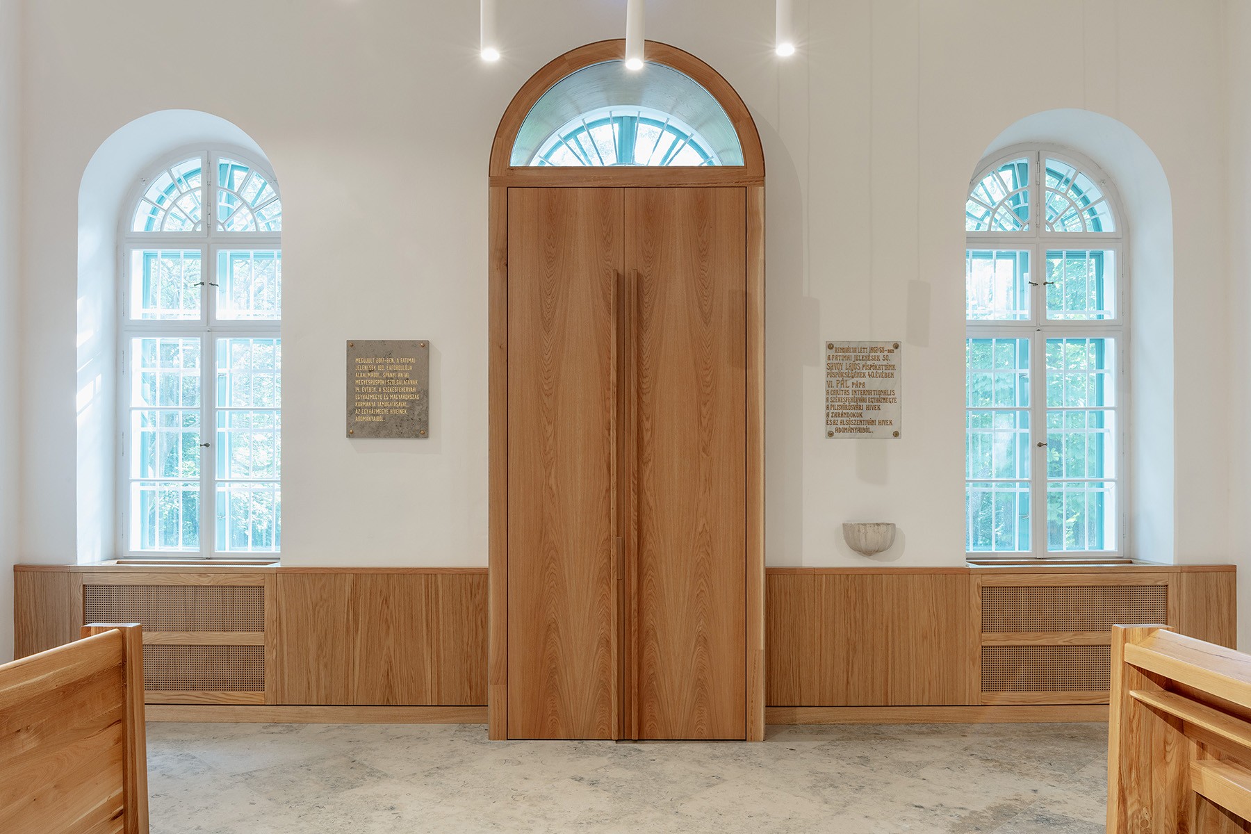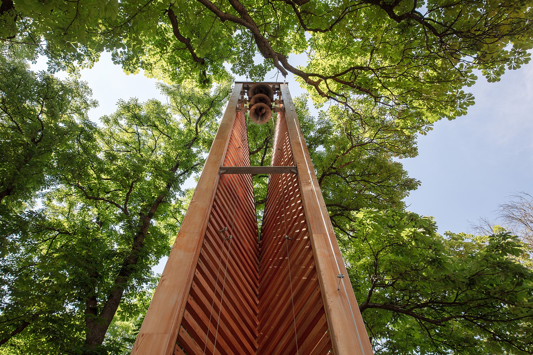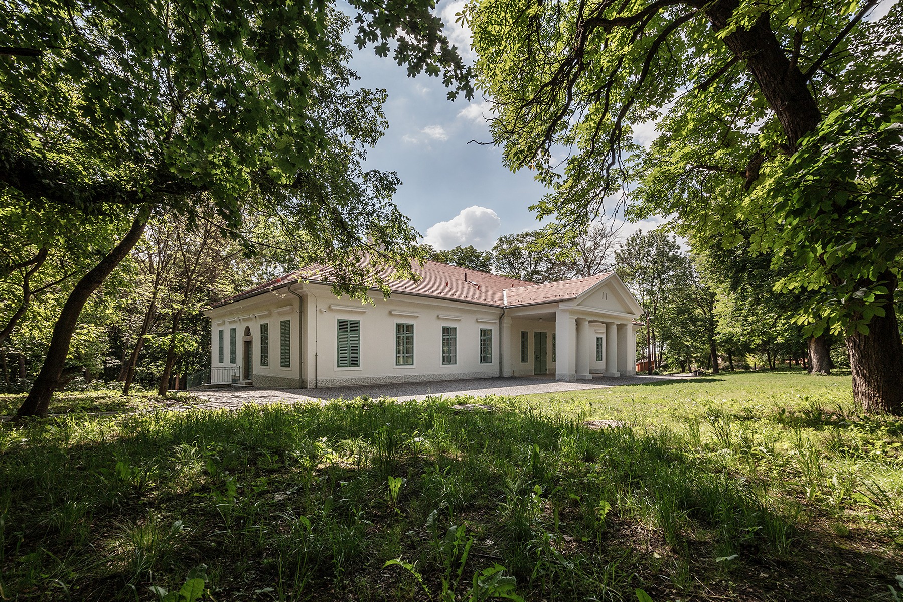 The appearance of the Blessed Virgin in Fatima was first celebrated on May 13th in 1951 in Alsószentiván. This tiny village has been frequented by lots of pilgrims since then, the Catholic church being a shrine on the 13th of every month between May and October. The renovation of the existing building and the shrine is a celebration of the 100th anniversary of Fatima. The open-air place for masses is made of timber, whilst the new altarpiece of the church was made from the plinth of a monument of the Soviet era. Szluha Castle, which also contains the parish, features an elegant portico, as well as a similarly stylish staircase from the garden and the renewed architectonic frame. The castle itself has a representative entrance, the axis of which is lengthened towards the garden with a pavilion. Among the foliages of the chestnut trees, there is also a geometric belfry, made exclusively of wood. The place for masses has an open-air pavilion with a shingle roof designed after the sanctuary widespread after the 2nd Vatican Council. The rebirth of the pilgrims’ centre evolved to its entirety with the reconfiguration and revival of the garden and the mansion grounds.